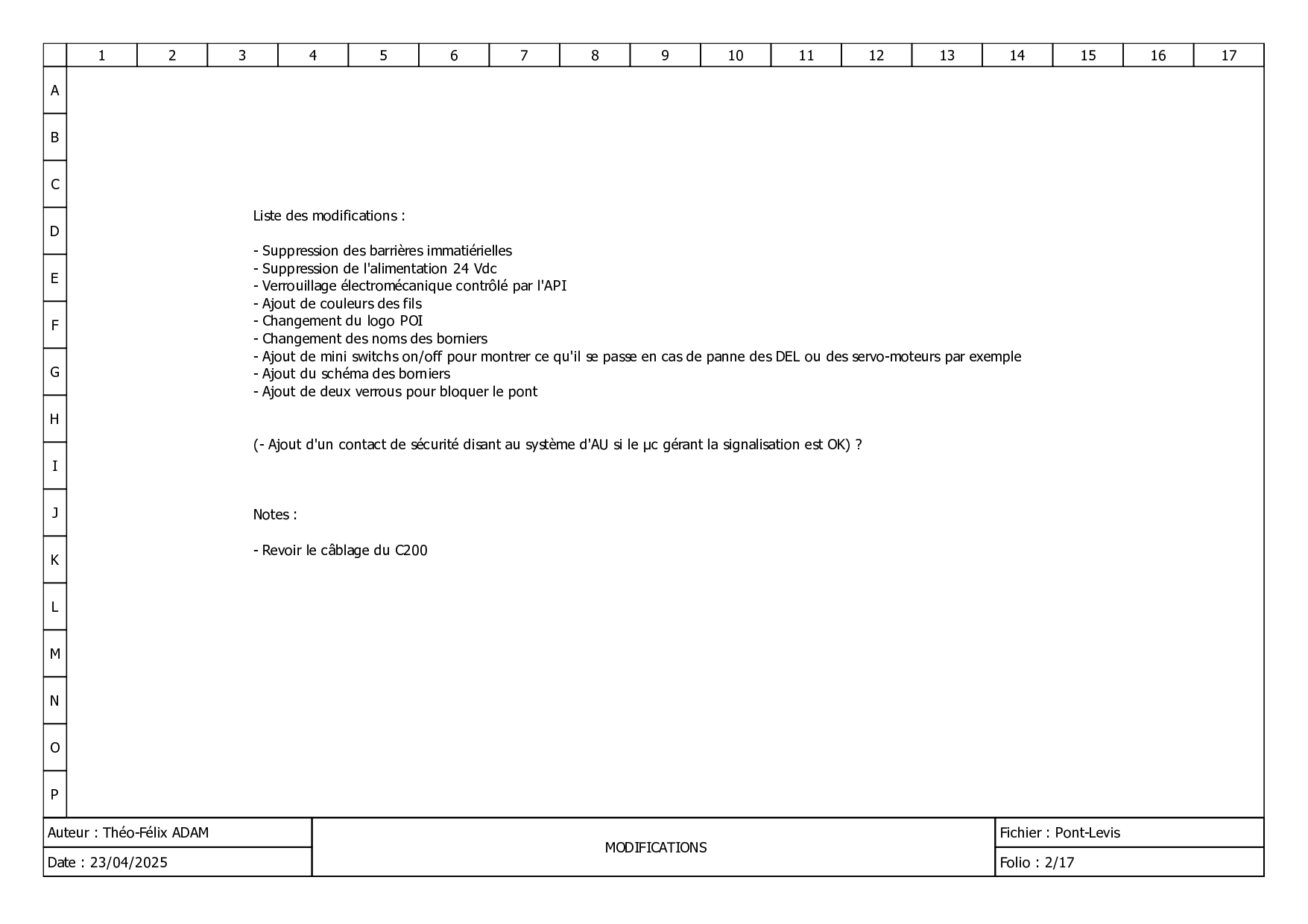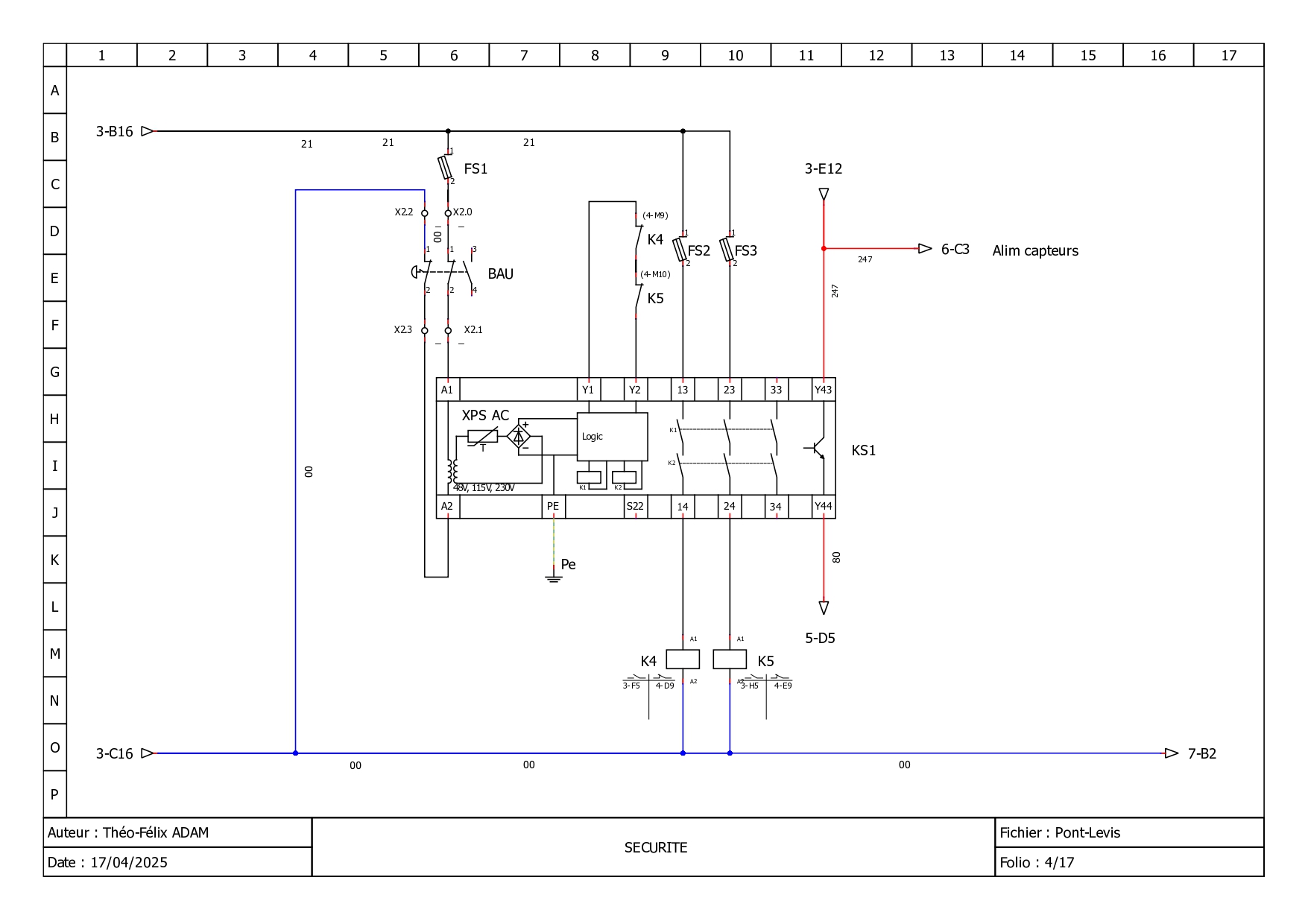 Ensuite, il faut remettre à jour ce schéma de câblage. La machine est assez âgée et elle ne répond plus aux normes de sécurité actuelles.