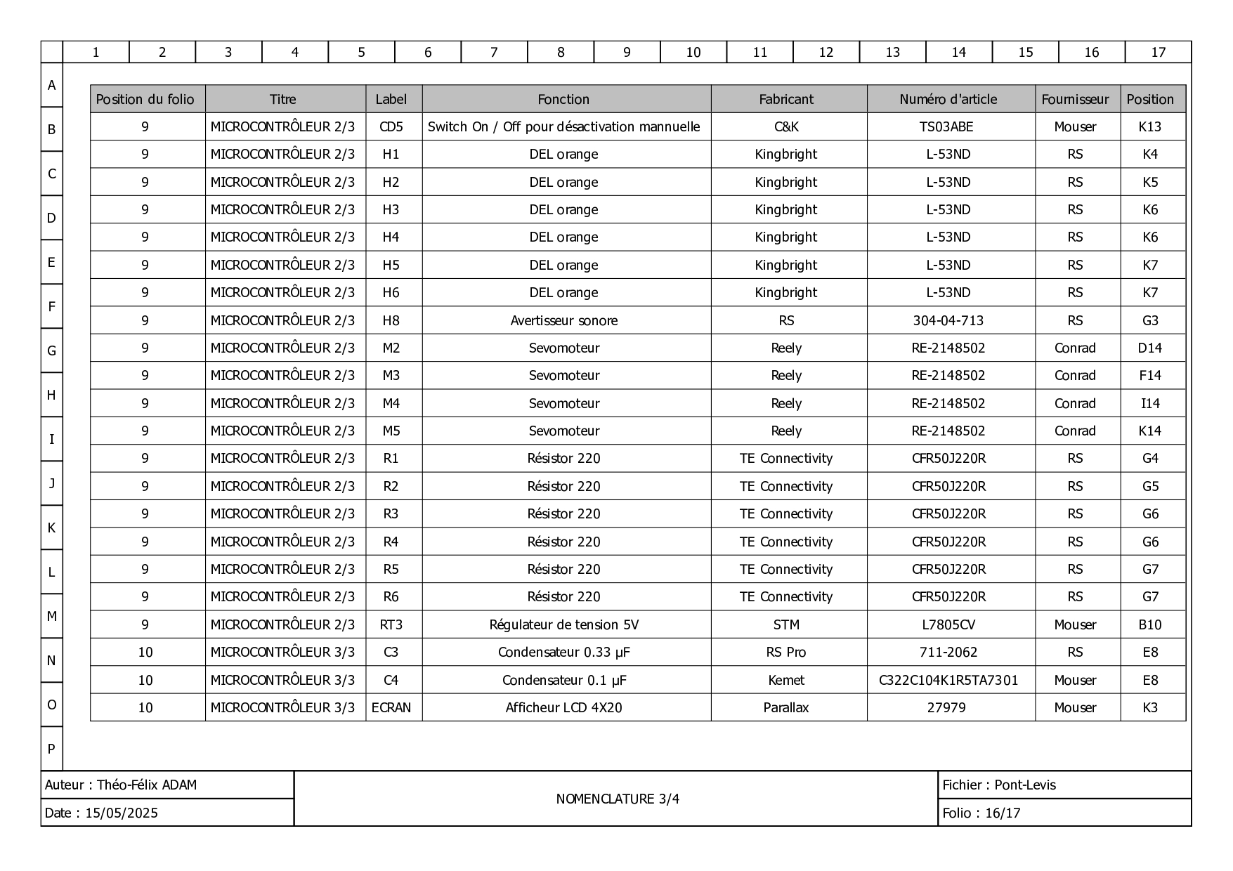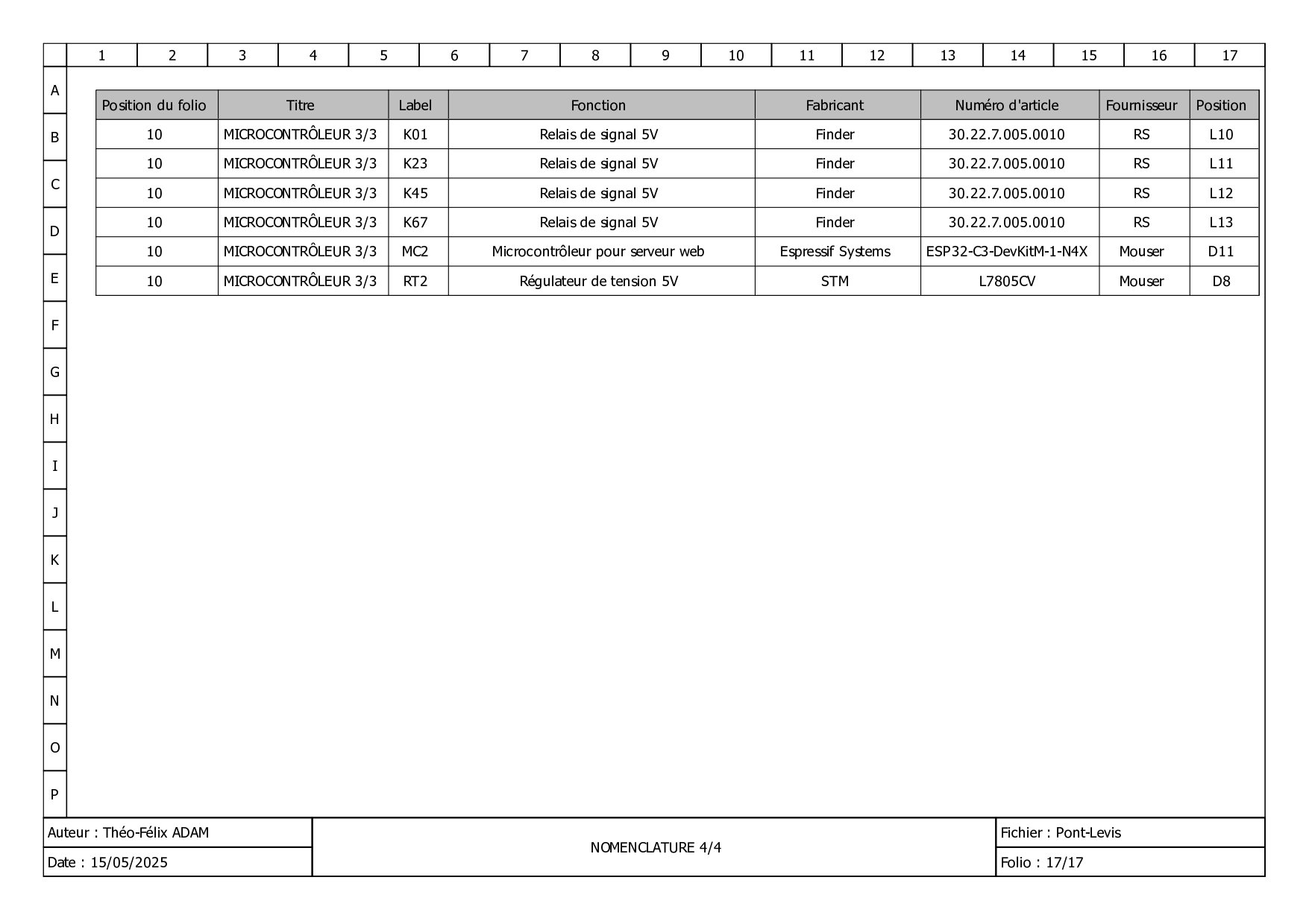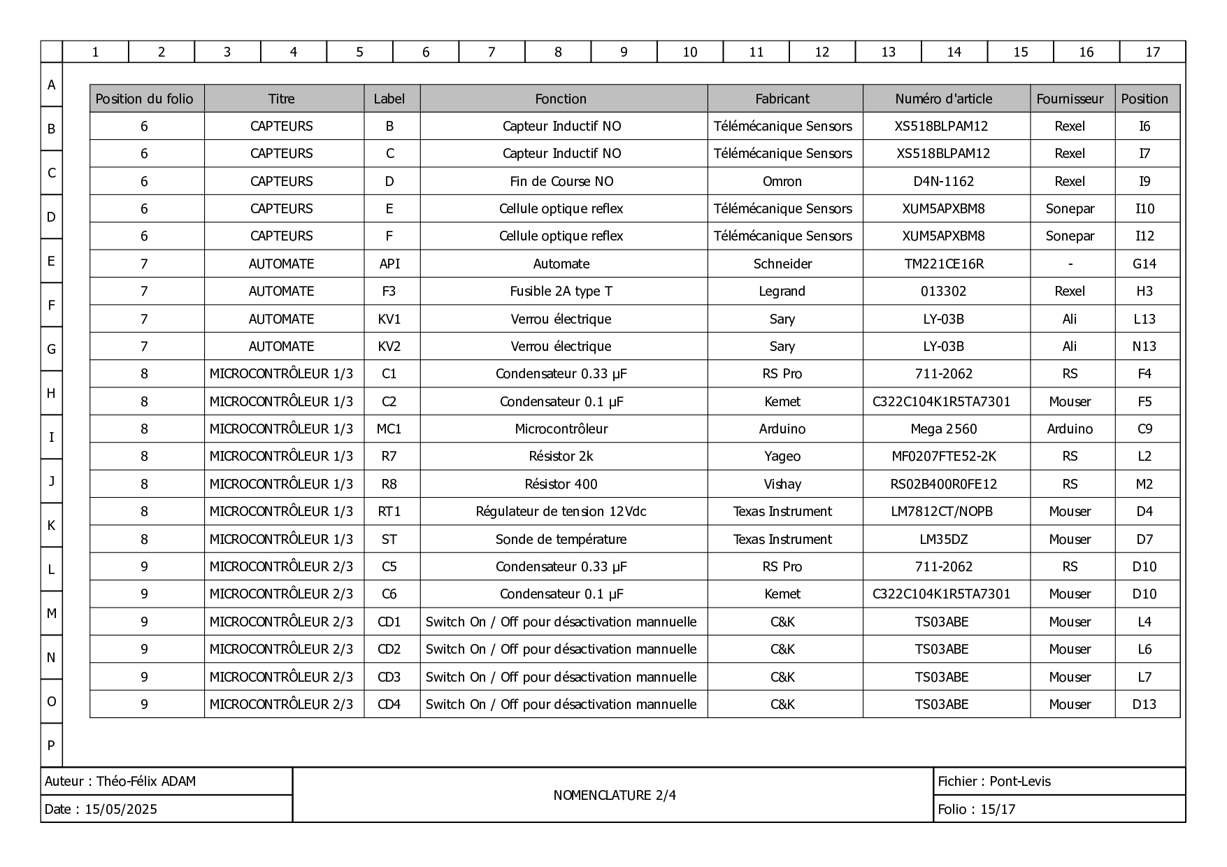Je me suis occupé de la restauration d'une machine emballant de la Javel dans des bouteilles. Dans un premier temps, j'ai réalisé le schéma actuel de la machine, pour tenter de comprendre son fonctionnement. Puisque