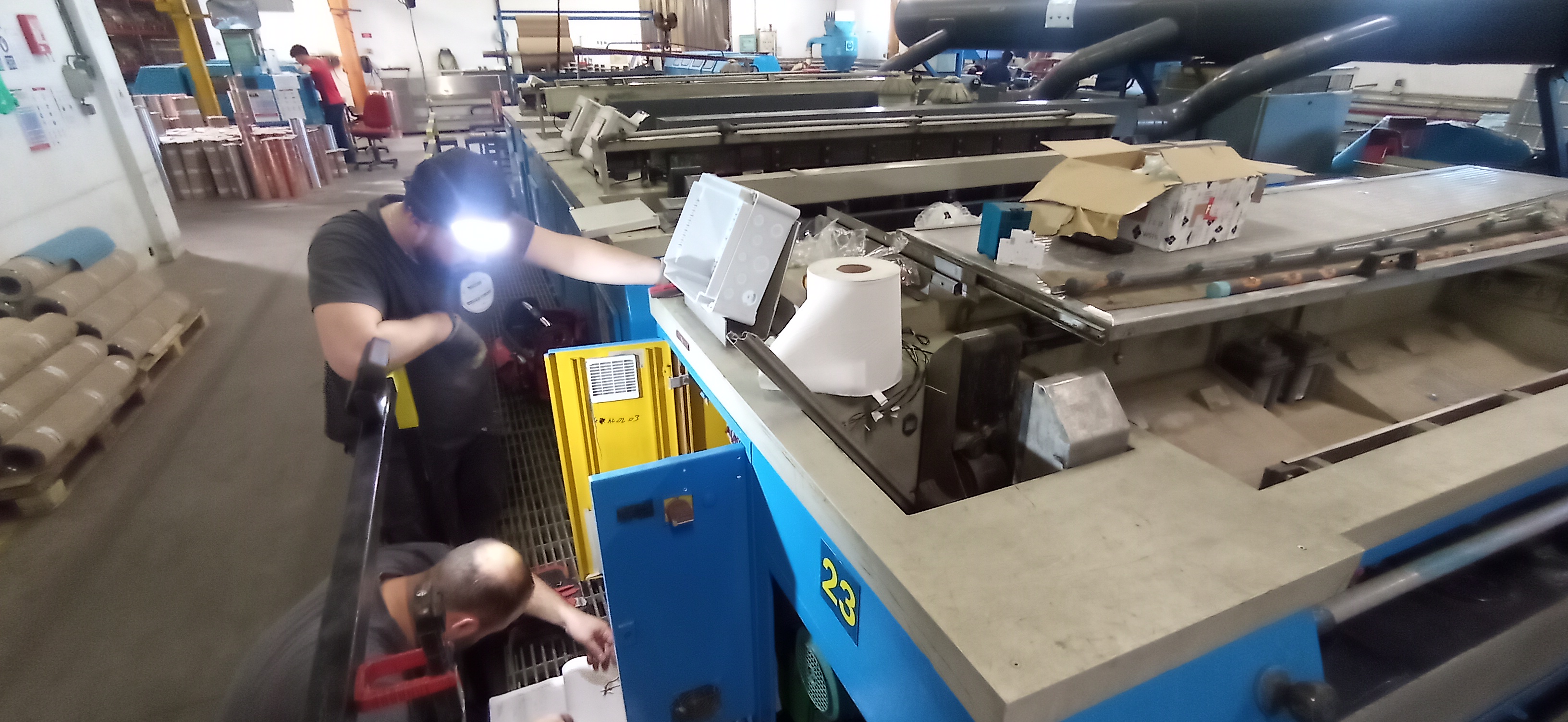 Pour mon premier chantier, un très gros chantier, j'ai eu l'occasion de tirer presque 8 kilomètres de câbles, pour l'entreprise MMP Packetis qui s'occupe de l'impression de notices et de boîtes de médicaments, autour d'Angoulême.