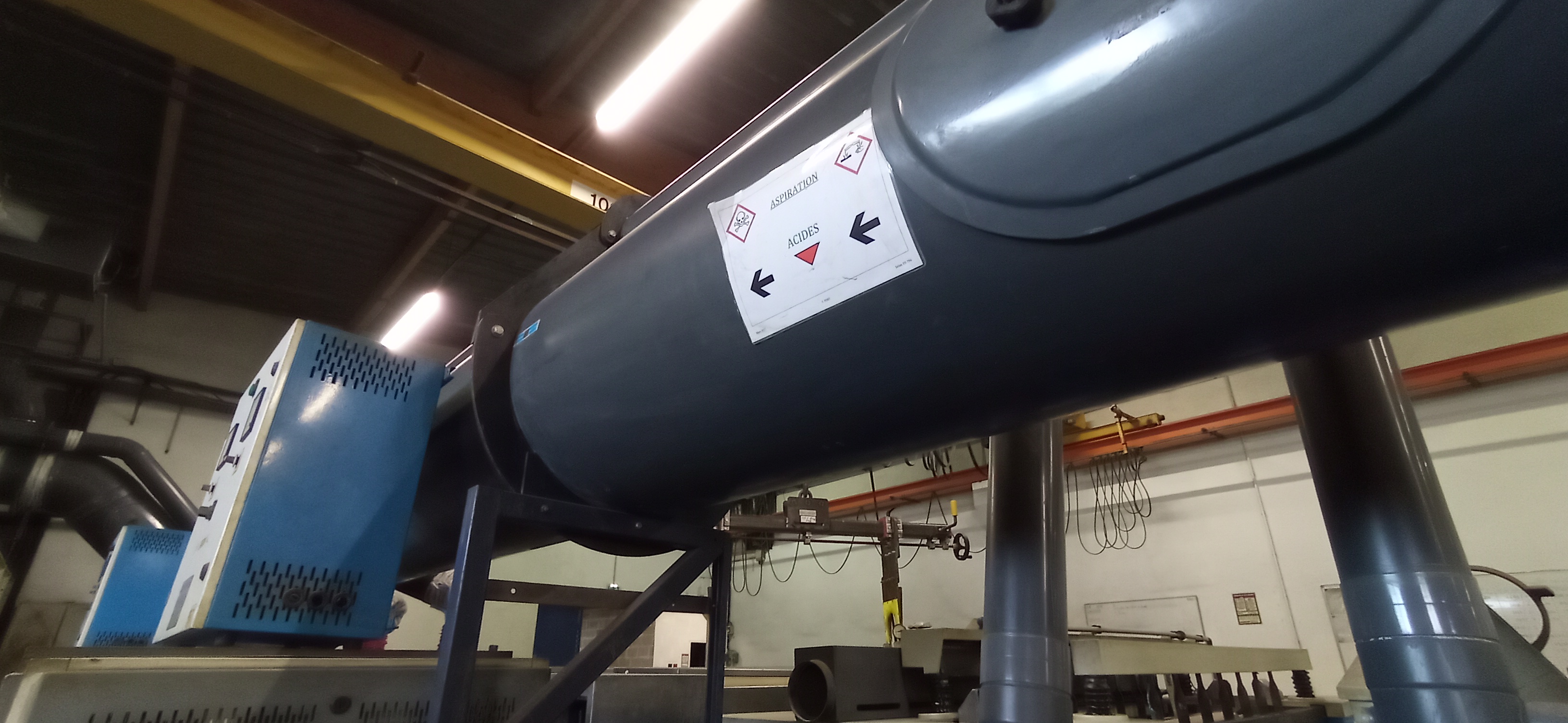 Juste à côté, se trouve la société EP 16 ou Emballages Plastiques 16, qui confectionne les bouteilles en plastique. Ces bouteilles sont acheminées à l'autre usine via un tuyeau dans lequel les bouteilles sont propulsées.